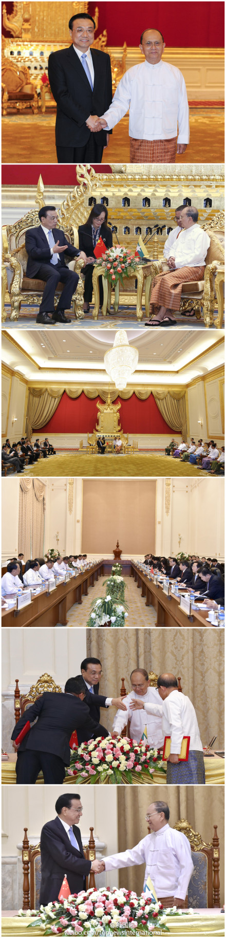 新华网北京11月14日电 据新华社“新国际”微博报道,李克强总理14日在内比都与缅甸总统吴登盛会谈时说,中缅“胞波”情谊深厚,愿中缅永做好邻居、好朋友、好伙伴,中国政府支持中国企业参与缅基础设施建设,使更多当地民众受益。会谈后,两国领导人见证了经贸、农业、金融、能源等领域合作文件的签署。