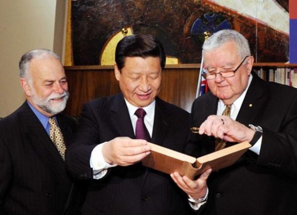 2010年6月22日,习近平在访澳期间出席向澳大利亚国立大学中华全球研究中心赠书仪式。新华社记者 饶爱民 摄