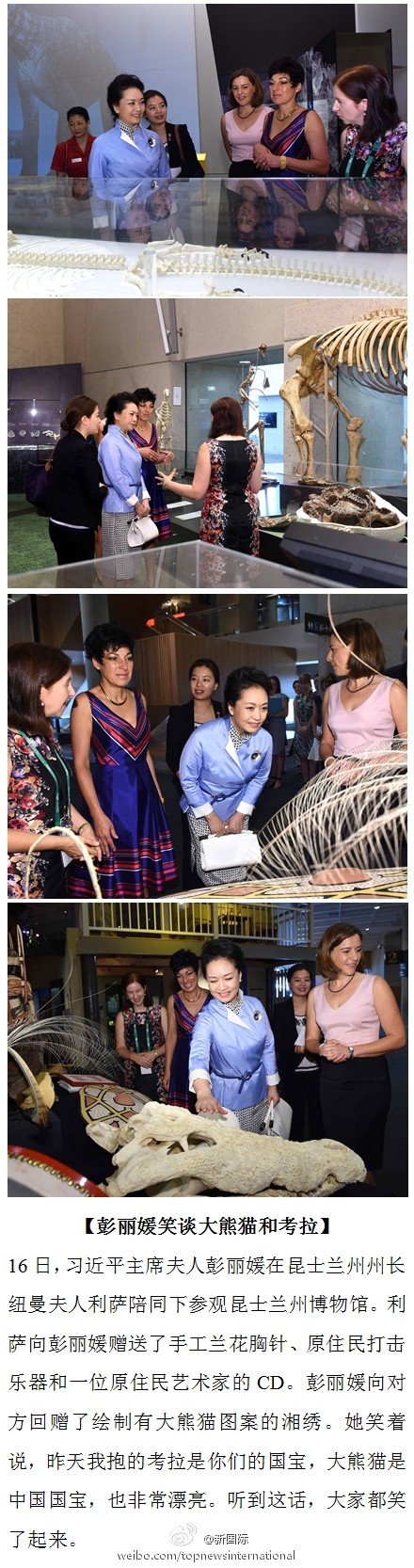 彭丽媛参观澳大利亚昆士兰州博物馆 笑谈大熊猫和考拉