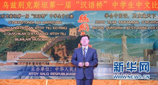 中国驻乌兹别克斯坦大使馆孙立杰大使在出席乌兹别克斯坦第一届“汉语桥”中学生中文比赛。