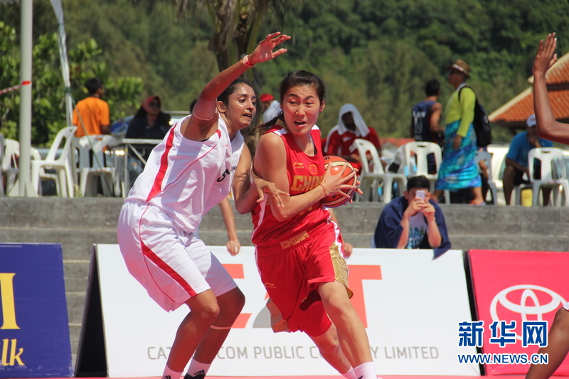 11月16日,中国沙滩篮球运动员房玲玲(右)在比赛中。中国体育代表团16日在泰国普吉举行的第四届亚洲沙滩运动会上勇夺2枚金牌和2枚铜牌。当天比赛全部结束时,中国队以3金2银5铜的成绩暂列奖牌榜第五。新华社发(塔纳摄)