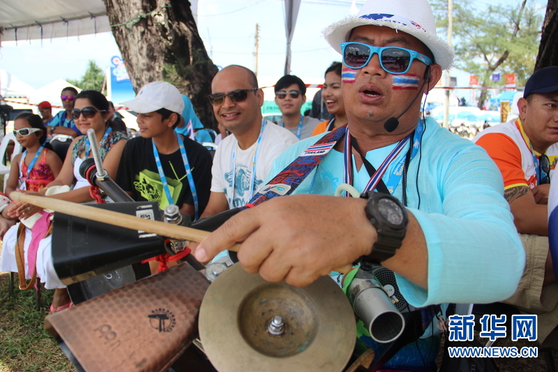 11月16日,泰国民众为泰国运动健儿加油。中国体育代表团16日在泰国普吉举行的第四届亚洲沙滩运动会上勇夺2枚金牌和2枚铜牌。当天比赛全部结束时,中国队以3金2银5铜的成绩暂列奖牌榜第五,东道主泰国队以9金11银12铜的成绩暂列金牌榜和奖牌榜第一。新华社发(塔纳摄)