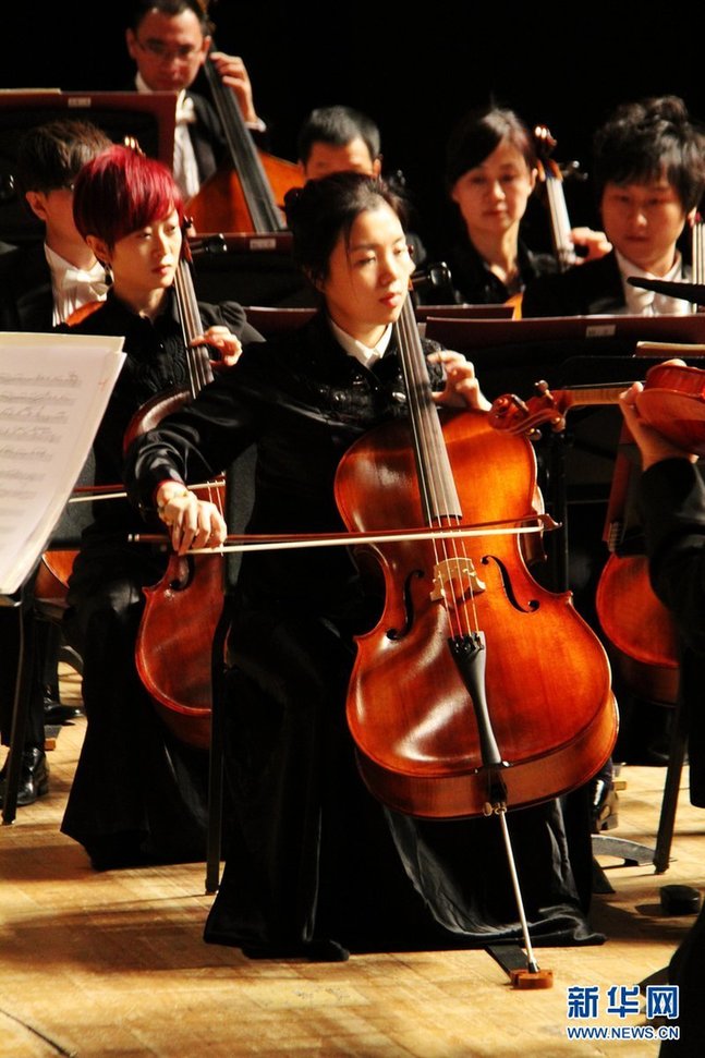 16日,首尔国立剧场,中央歌剧院乐手在演奏。新华社记者彭茜摄
