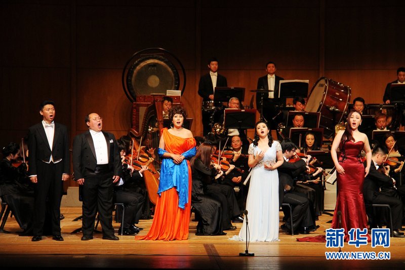 16日,首尔国立剧场,中央歌剧院歌唱家们在演唱。新华社记者彭茜摄