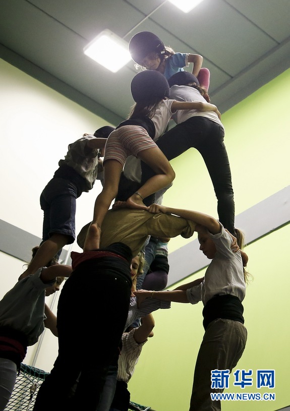 Jana在训练中,她就快爬到最上面了。新华社巴塞罗那分社摄影师Pau Barrena 摄