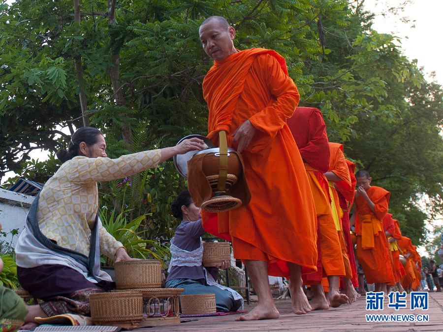 老挝每天清晨风雨无阻上演的“布施”盛景。(陈铎 摄)