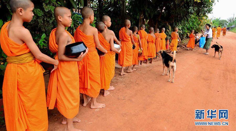 老挝每天清晨风雨无阻上演的“布施”盛景。(刘艾伦 摄)