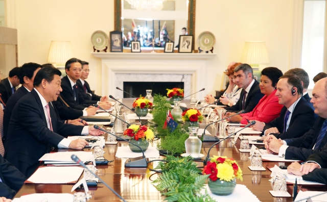 (11月20日,国家主席习近平在惠灵顿同新西兰总理约翰·基举行会谈。新华社记者姚大伟摄)