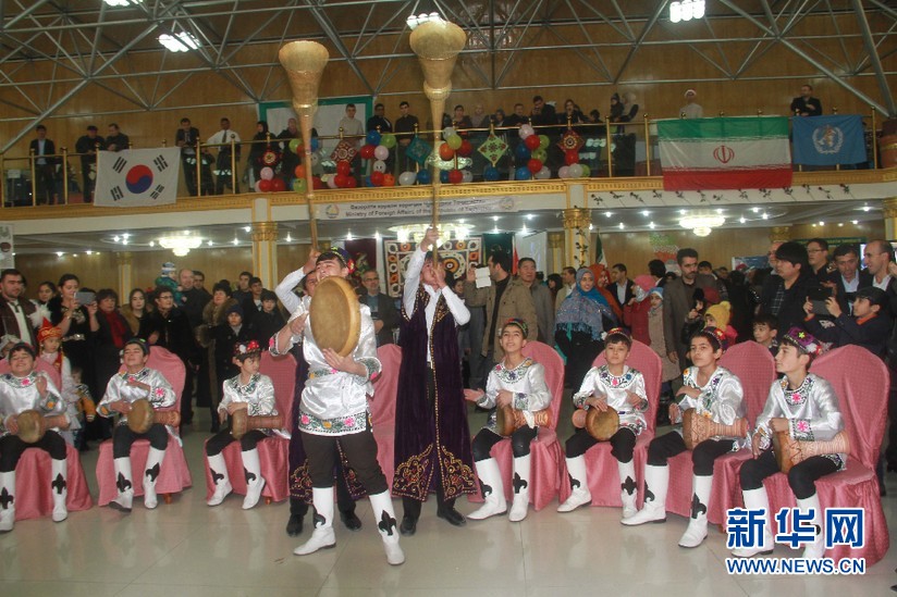 塔吉克斯坦青少年乐团在开幕式前的演出。