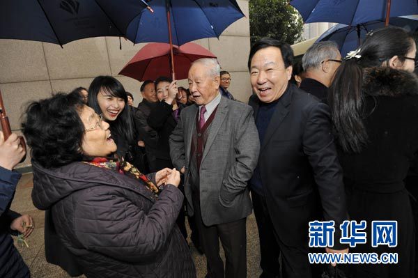 12月9日,中国政策科学研究会国家安全政策委员会副会长糜振玉中将(中)、中国政策科学研究会国家安全政策委员会事业发展部主任郭福全(右)、中国政策科学研究会国家安全政策委员会综合计划部副主任王彦丰(左),在西安高新一中考察。 裴兵 摄