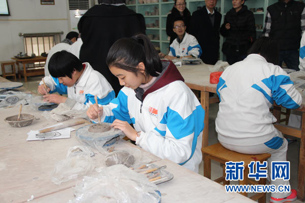 12月9日,西安高新一中学生正在制作陶艺作品。 徐倩 摄