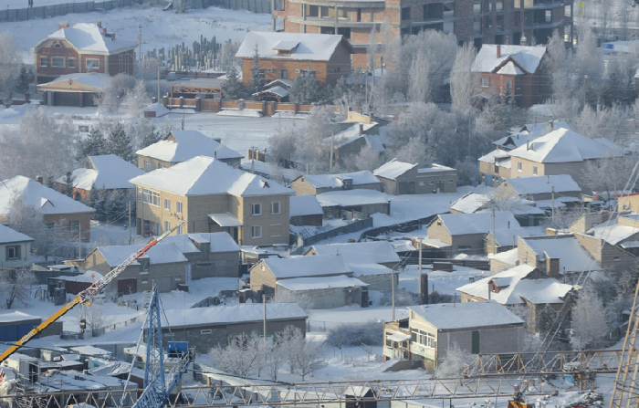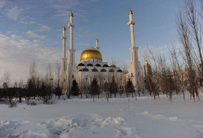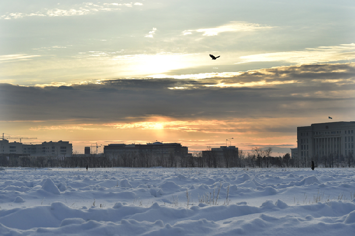 总理抵达当天的阿斯塔纳。中新社 刘震 摄