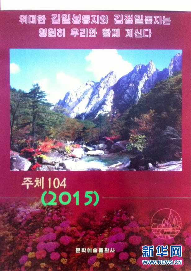 朝鲜2015年山水挂历首页。新华社记者曾涛摄