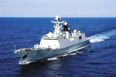导弹护卫舰黄山舰(舷号570)是中国自行研制生产的新型导弹护卫舰,舰长134米,宽16米,满载排水量4000余吨。2008年服役于中国海军南海舰队。