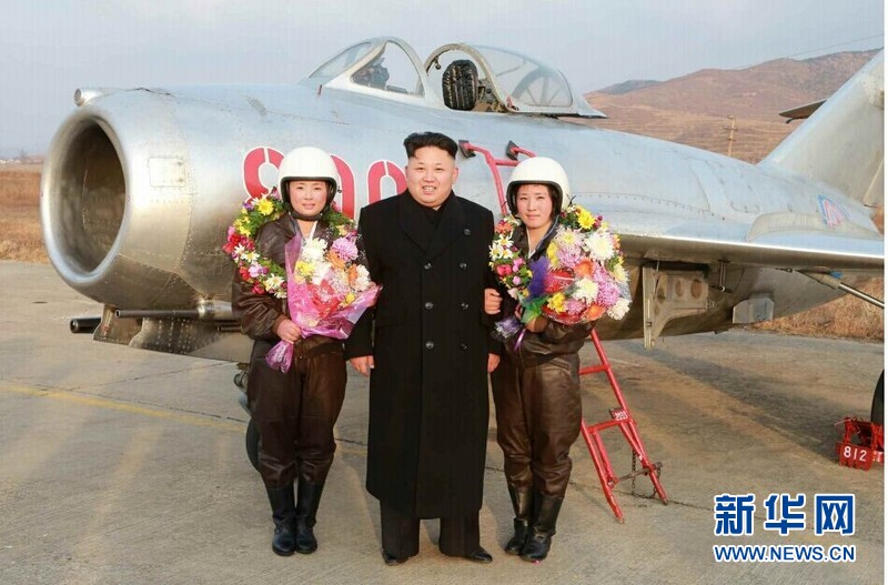 金正恩同女歼击机飞行员合影。网络照片