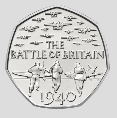 纪念英德空军不列颠之战75周年的面值50便士硬币。