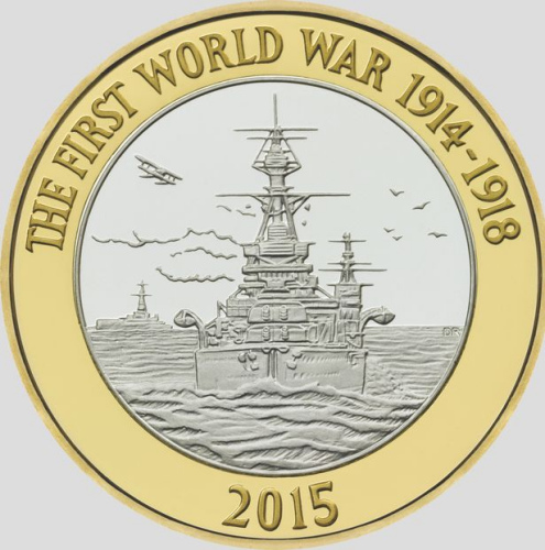 纪念英国皇家海军在一战中贡献的面值2英镑硬币。