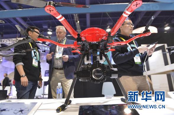 这是拉斯韦加斯国际消费电子展6日开幕当天展区的一角。今年的电子展首次专门设立无人机展区,这一举动是近来民用无人机持续升温的切实反映。在刚刚过去的圣诞新年假日季,无人机成为了美国最热门的礼物之一。美国政府也于去年首次批准无人机用于影视拍摄,此外还首次批准在阿拉斯加州的产油区上空进行巡查飞行。而美国电子商务巨头亚马逊则宣布未来计划采用无人机投递包裹。