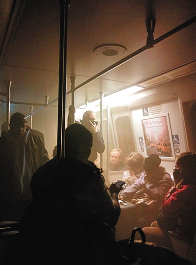 12日,美国华盛顿,地铁车厢里烟雾弥漫。