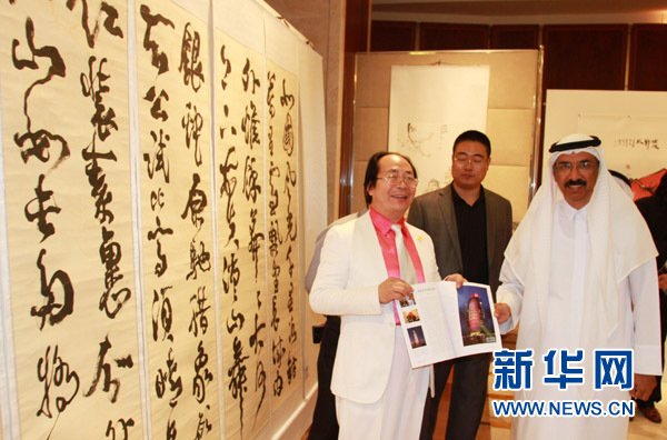 本次艺术群展为期5天,集结了一批具有一定国际声誉的中国艺术名家的代表作品,代表团团长、中国书法艺术研究院理事长林中阳所书写的“蛇”、“马”已连续2年被迪拜帆船酒店采用,投影至建筑外墙以庆祝中国农历春节。他此次展出的书法作品“沁园春•雪”沉稳浑厚、气韵灵动,中国西部画院院长毛雪峰以西部题材的重彩山水作品、中国新华书画院副院长曹文忠的写意花鸟、甘肃书画研究院副院长刘江的工笔画、中国翰玺书画院院长韦承宗的中国传统山水画,北京国宝书画院副院长郭有河的写意人物,以及中国沫若书画院院长余新志的花鸟等作品均体现了中国实力派主流书画家的艺术水准。中国景泰蓝粉彩大师李佩卿、来自河南的刀笔画家王濮方等的作品则令阿拉伯观众大开眼界、啧啧称奇。