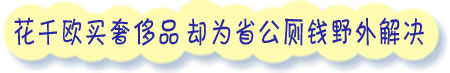10月一个下午,一辆载着中国游客的巴士在法兰克福一高速路收费站停下。翻译和导游李小姐告诉这群游客,如果要使用公厕每人要交0.7欧元。这在巴士上引起骚动。几个男人决定野外“解决”。李导游猜到他们会这样做,因为不少第一次出国旅行的中国游客都这样。但之后发生的事情却让她吃惊:一名衣着光鲜的中年女士也加入“野外解决”队伍。已当了7年导游的李说:“我惊呆了。这位不愿意付0.7欧元的女士,在这次旅程中却花了好几千欧元买一只江诗丹顿手表。”