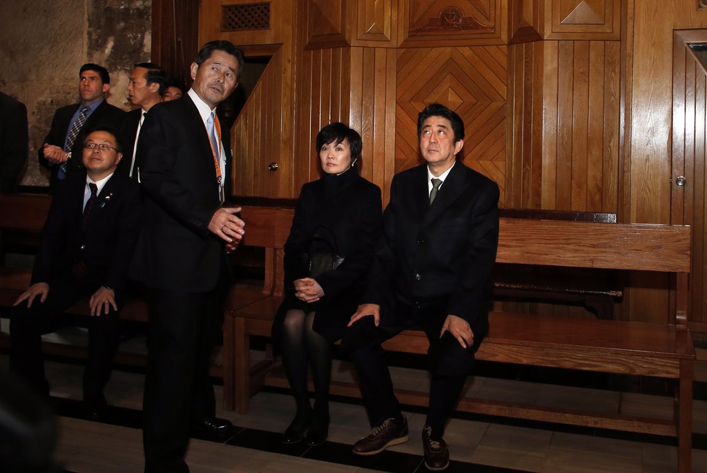 当地时间2015年1月19日,以色列耶路撒冷,日本首相安倍晋三与妻子安倍昭惠在耶路撒冷旧城自拍。