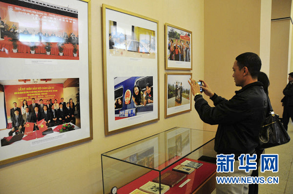 1月19日,中国驻越南大使馆和越南胡志明博物馆在越南首都河内联合举办“纪念中越建交65周年图片展”,展出了有关中越交往的120多幅图片和许多实物。