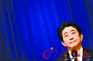 安倍晋三二十日在耶路撒冷召开新闻发布会。