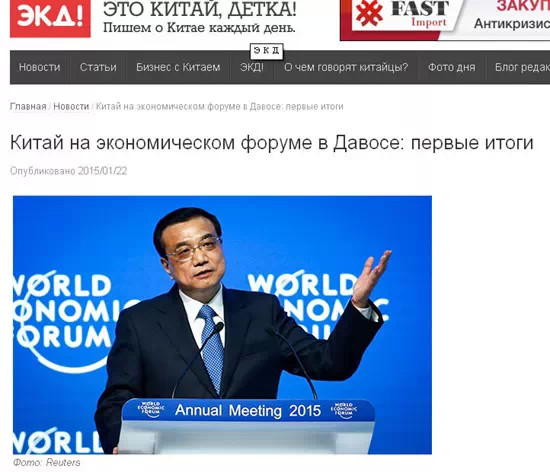 以介绍中国社会和经济发展为主的网站chinababe.ru22日发表文章,盘点了中国在此次达沃斯论坛上取得的初步成果。文章称,中国代表团由李克强总理率领。目前,中国是世界第二大经济体,国际社会非常关注中国的经济发展规模和速度。在论坛期间,李克强总理有关中国经济转型,特别是对中国经济增长速度的阐释打消了国际社会的顾虑。