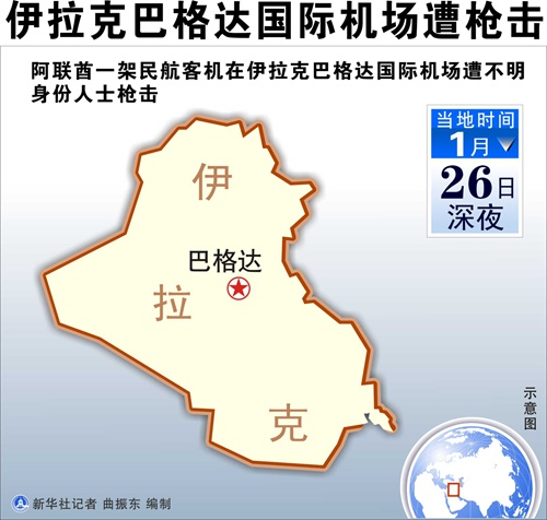 图表:伊拉克巴格达国际机场遭枪击。 新华社记者 曲振东 编制