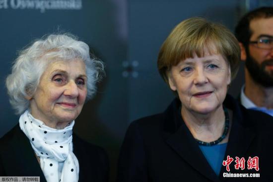 当地时间2015年1月26日,德国柏林,奥斯维辛集中营将于27日迎来解放70周年纪念,德国总理默克尔会晤奥斯维辛集中营幸存者。