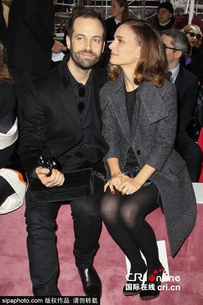 娜塔丽·波特曼与老公巴黎高定秀场甜蜜相拥恩爱登对 图片来源:Sipaphoto