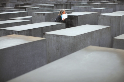 1月27日,在德国柏林,一名游客走过犹太人纪念碑群。本版图片新华社发
