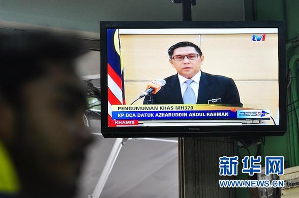 1月29日,在马来西亚吉隆坡,电视直播马来西亚民航局局长爱兹哈尔丁发表声明。马来西亚民航局当日宣布,马来西亚航空公司MH370航班失事,推定机上全部239名乘客及机组成员已遇难。 新华社发(张纹综摄)