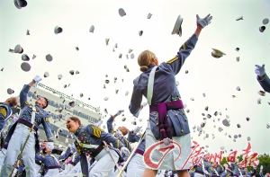 美国西点军校毕业典礼阅兵更像一场狂欢。
