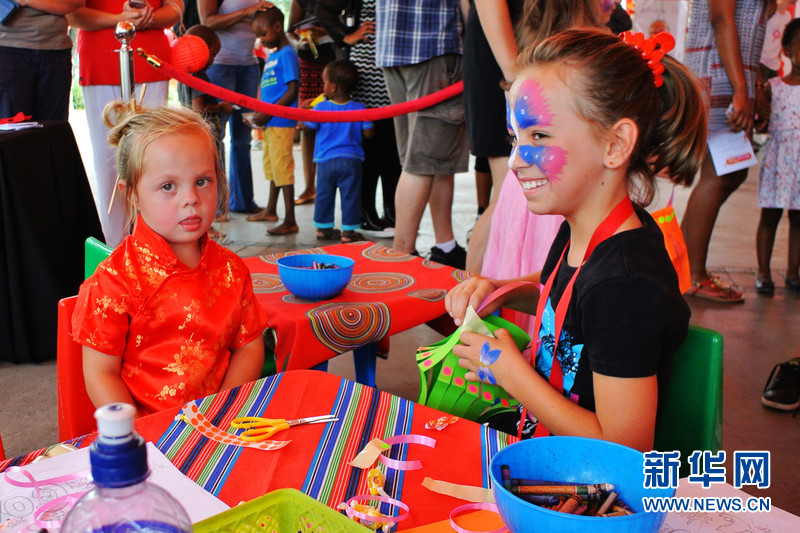 南非小朋友体验中国文化。新华社发(郭兴华摄)