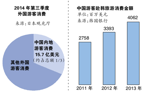 置身日本大型电器商店,中国导购总在不经意间出现,在解决所有疑问的同时提醒你,用银联卡付款有额外折扣。在韩国明洞,“欢迎您来访”的汉字横幅高高挂起,给中国人宾至如归的温暖。