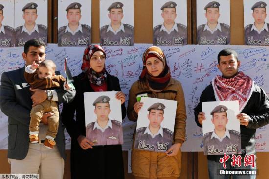约旦空军中尉飞行员莫亚兹 卡萨斯贝去年12月24日奉命驾机轰炸“伊斯兰国”武装在叙利亚城市拉卡附近的据点,坠机后被“伊斯兰国”武装抓获。