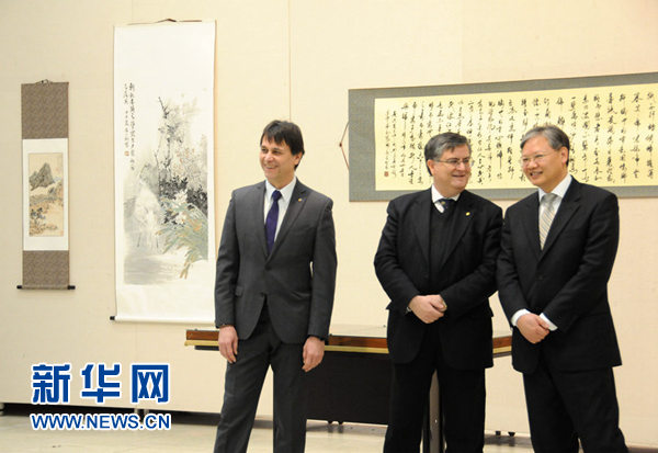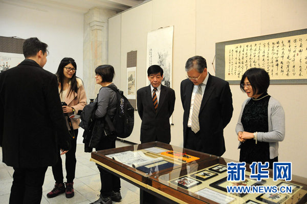 徐飞洪大使(右二)参观中国文化展。新华网记者 林惠芬 摄