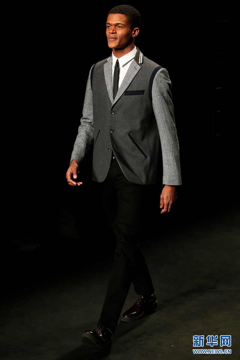 西班牙本土品牌Desigual3日在第15届“080巴塞罗那时装展”(080 Barcelona Fashion)上推出了自己的新款男装。一水儿的型男帅哥走在T台上,也是一道别样的风景。(保·巴雷纳 摄)