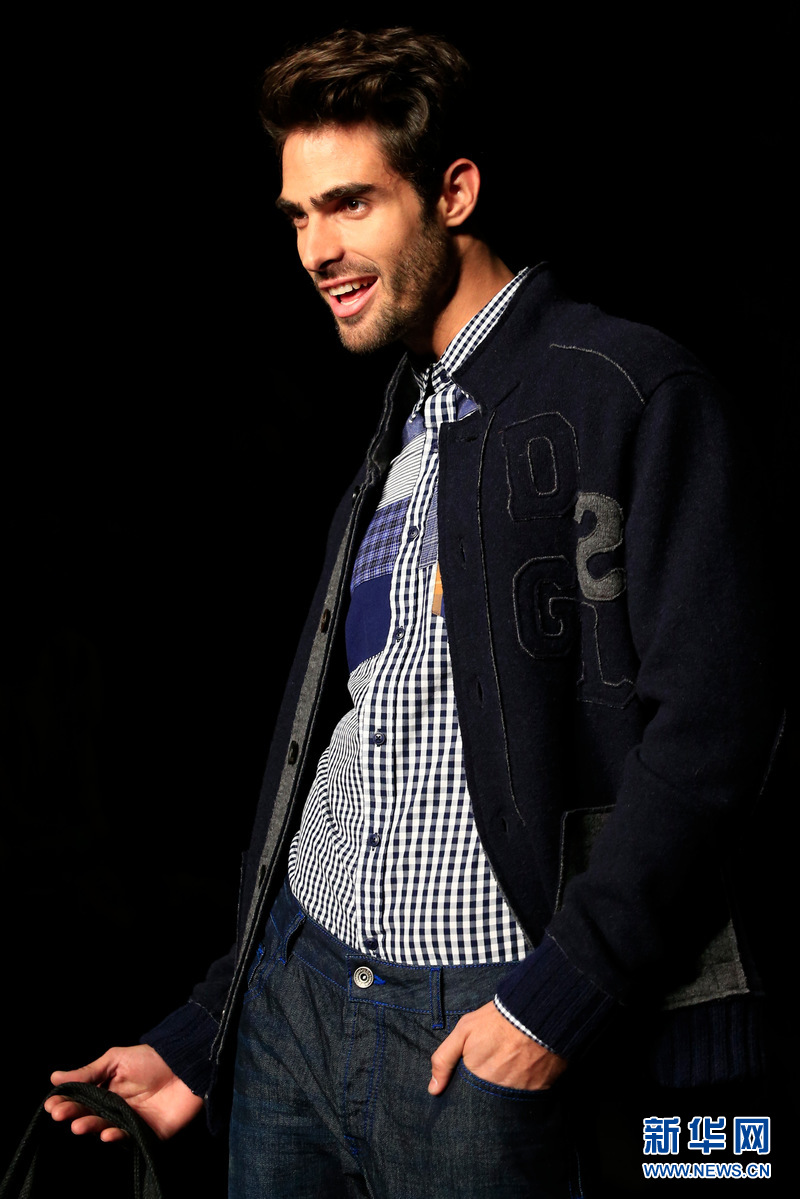 西班牙本土品牌Desigual3日在第15届“080巴塞罗那时装展”(080 Barcelona Fashion)上推出了自己的新款男装。一水儿的型男帅哥走在T台上,也是一道别样的风景。(保·巴雷纳 摄)