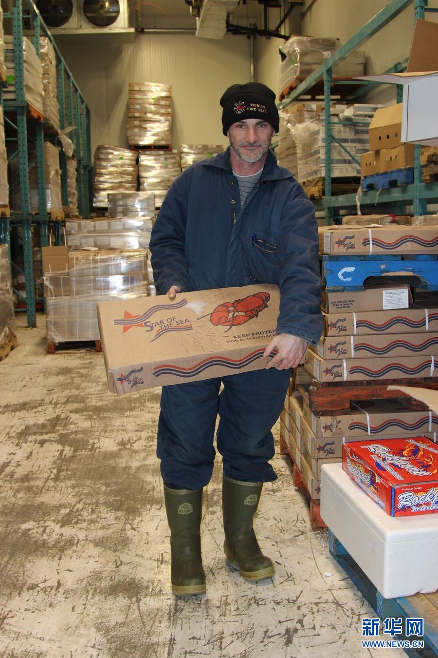 图为在加拿大爱德华王子岛省的当地知名水产公司皇家之星食品公司的搬运工人。新华社记者曾德金摄