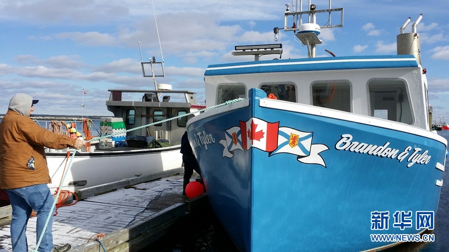 在加拿大新斯科舍省南部的洛克波特渔港,渔民迈克已将龙虾捕捞船准备就绪。新华社记者晏忠华摄