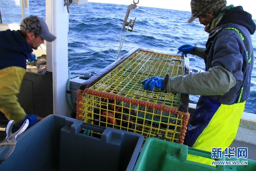 在加拿大新斯科舍省南部的洛克波特渔港,渔民欧尼·怀特和同伴正在作业。新华社记者晏忠华摄