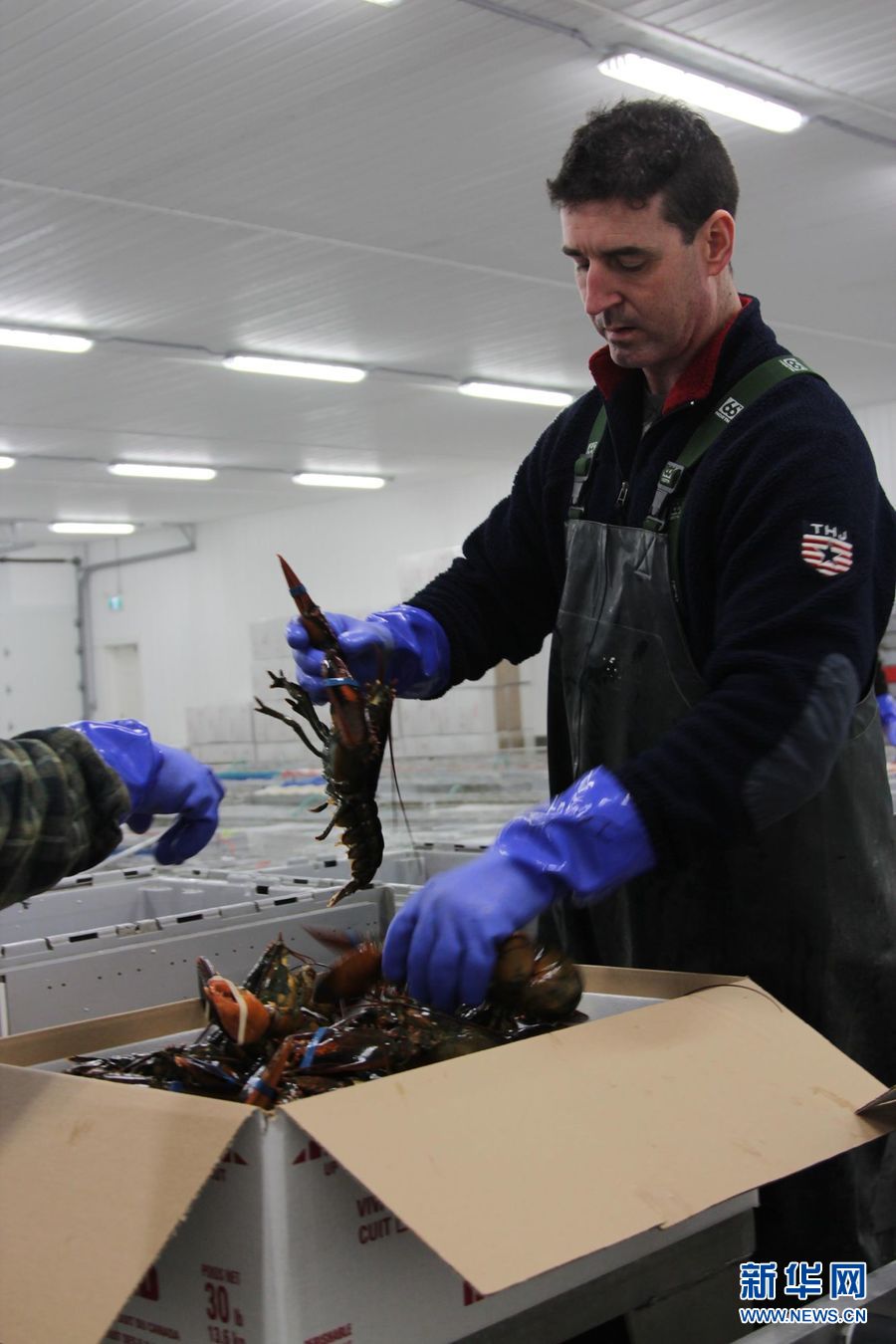 在位于加拿大东部新斯科舍省的下西帕布尼科渔村,一家名为“船长之选龙虾公司”的龙虾包装工厂工人正在进行包装。新华社记者曾德金摄