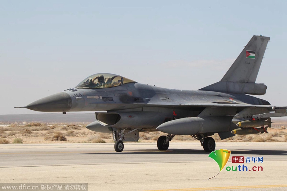 当地时间2015年2月5日公布的图片,约旦战机准备从一空军基地起飞,将对叙利亚境内的极端组织“伊斯兰国”进行空袭,严厉回击极端组织杀害约旦飞行员。图片署名:JORDAN NEWS AGENCY HANDOUT/东方IC
