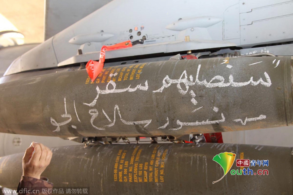 当地时间2015年2月5日公布的图片,约旦战机准备从一空军基地起飞,将对叙利亚境内的极端组织“伊斯兰国”进行空袭,严厉回击极端组织杀害约旦飞行员。图片署名:JORDAN NEWS AGENCY HANDOUT/东方IC