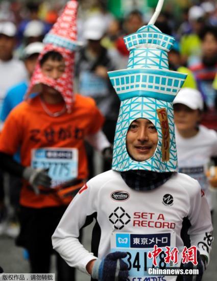 资料图:当地时间2014年2月23日,日本东京举行马拉松赛,3万5千名选手参赛,其中不乏造型奇葩的扮相。