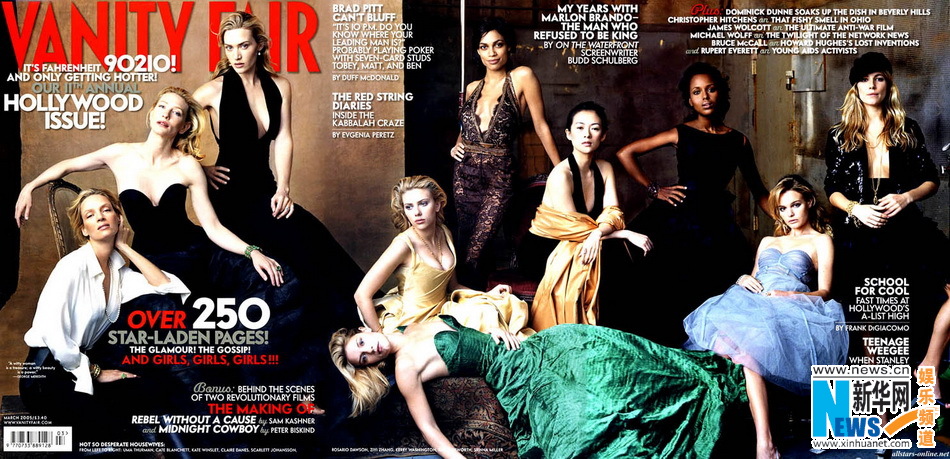 美国《名利场》杂志从1995年开始,每年颁奖季均推出一期好莱坞特刊,荣登封面的这些人正是好莱坞最火爆的影星,如莱昂纳多·迪卡普里奥、马修·麦康纳、斯嘉丽·约翰逊等人均曾登此封面。对于非美国演员来说,能够登上这个封面也是被好莱坞认可的一种标志,比如2000年登此封面的西班牙女演员佩内洛普·克鲁兹。在华人影星中,章子怡因《卧虎藏龙》《英雄》《十面埋伏》等电影作品,逐渐为好莱坞所熟知。2005年,章子怡与凯特·布兰切特、乌玛·瑟曼、凯特·温丝莱特等好莱坞影星同登特刊封面,成为章子怡在好莱坞确立地位的标志之一。2005年起,章子怡成为奥斯卡终身评委,主演好莱坞A级制作《艺伎回忆录》,后凭此片入围金球奖影后,在好莱坞收获颇丰,成为当之无愧在好莱坞最红的中国影星。