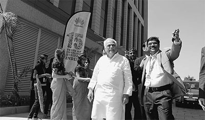 中国电信企业坚持发展,适应规则,凭借过硬的产品和服务赢得了海外市场的信赖。图为出席华为印度公司15周年庆的印度卡纳塔克邦高级官员。